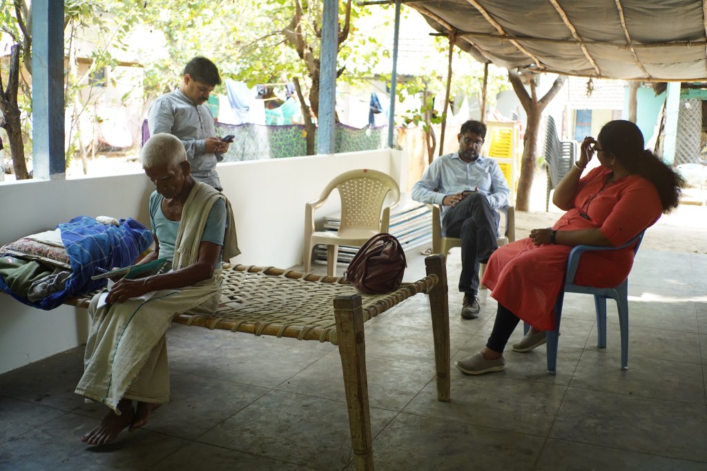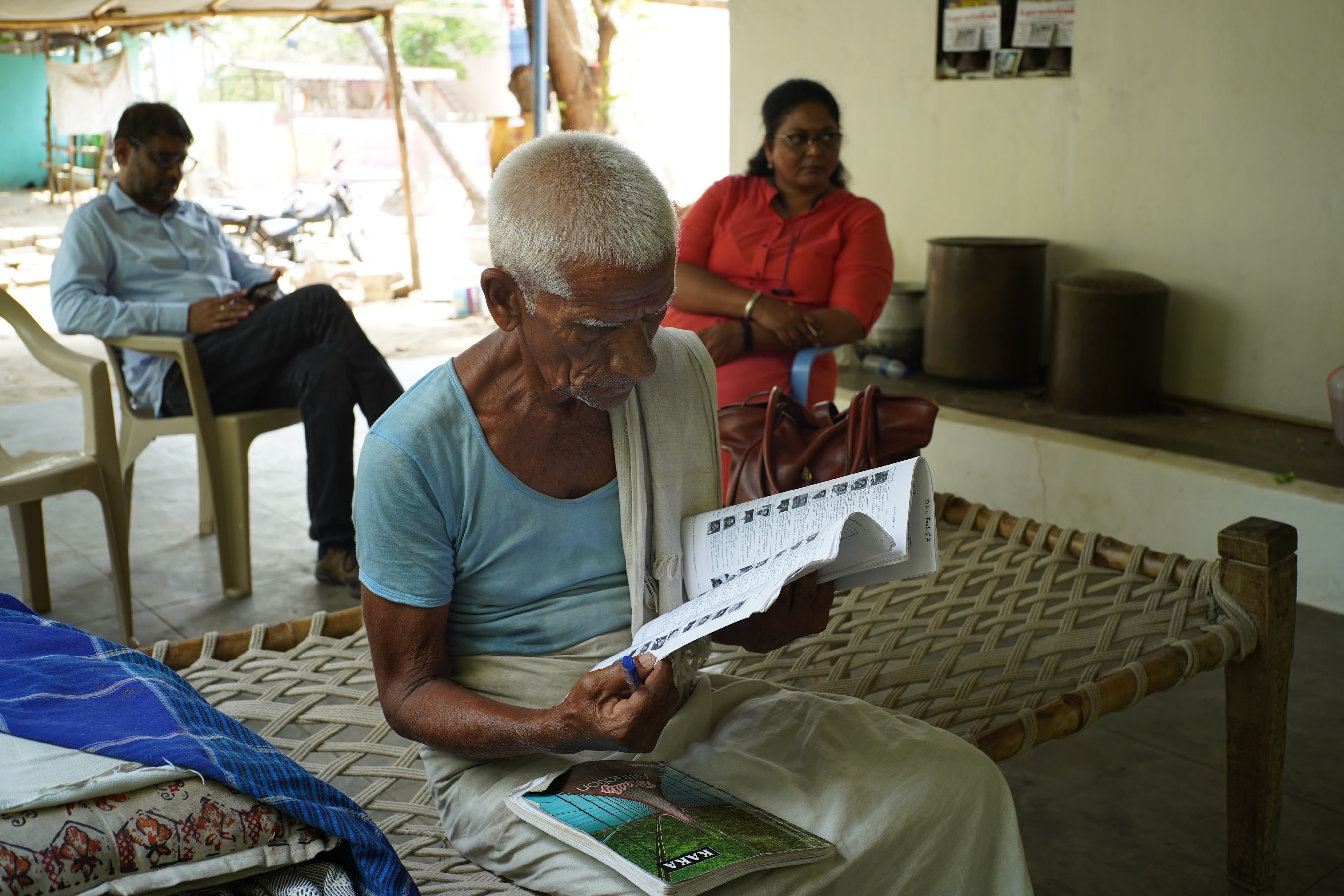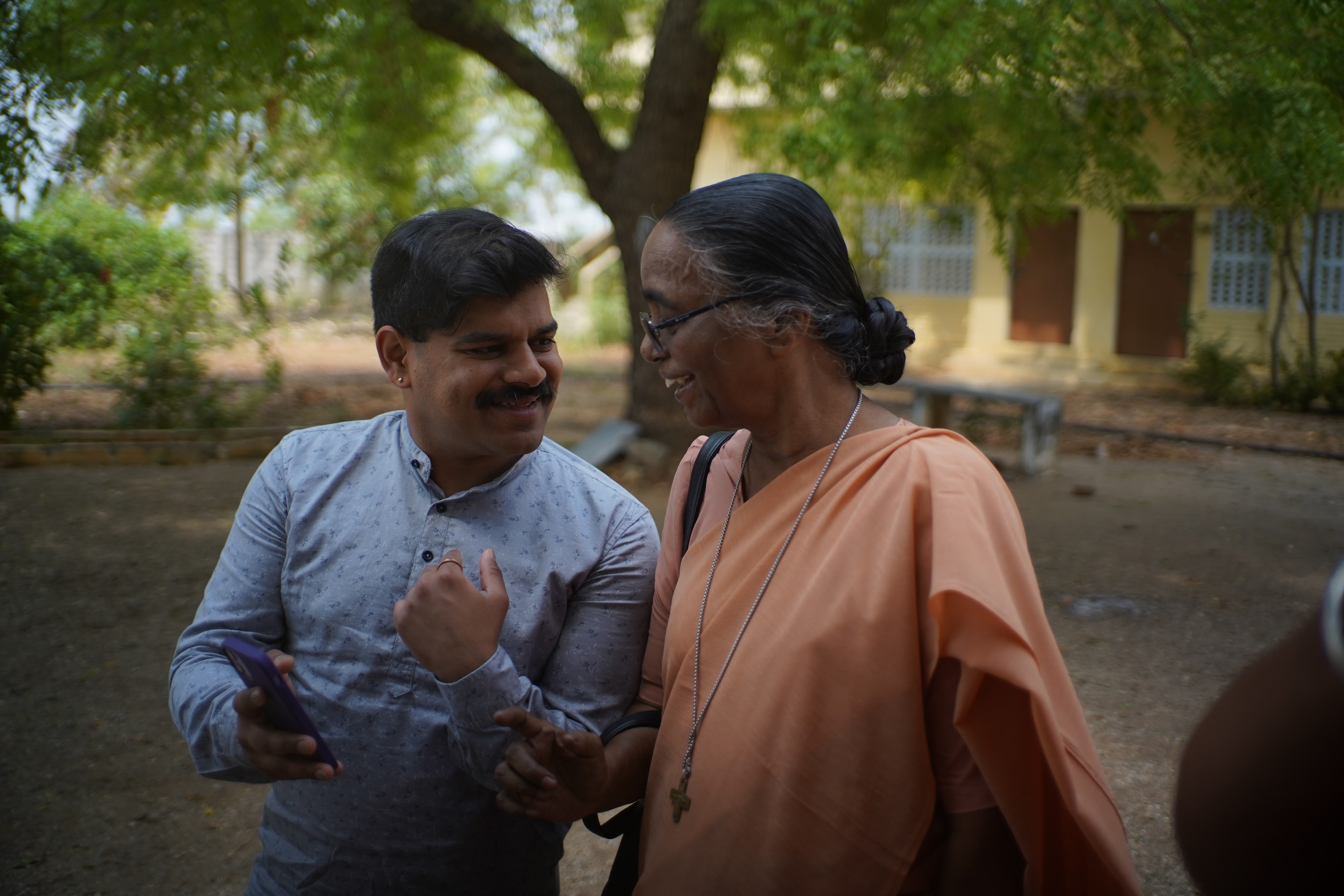 Kumar holding a newspaper with the second news story covering his search. The story ran in The Hindu News.Kumar and Surya (interpreter and photographer) in the hotel lobby.Anjali performing our first DNA swab of a man who we initially thought could be a brother but his age all but rules him out.Kumar thanking a community leader for making calls on our behalf and helping us with new leads.A doctor, village elder and parish leader wishing us luck and blessing us as we leave after a lengthy consultation.Snack break at a tea stall since we never seem to be able to fit lunch into our days.Anjali, two former orphanage staff members and Kumar walking in a central area of St. Joseph’s COllege where they now work.Kumar showing pictures to a former caretaker who looked after Kumar while he was at the orphanage.Former orphanage director, former orphanage caretaker and Kumar.Kumar showing a picture of himself and an elderly Sister who took care of Kumar in the orphanage (she is now about 90) while the former orphanage director looks on.