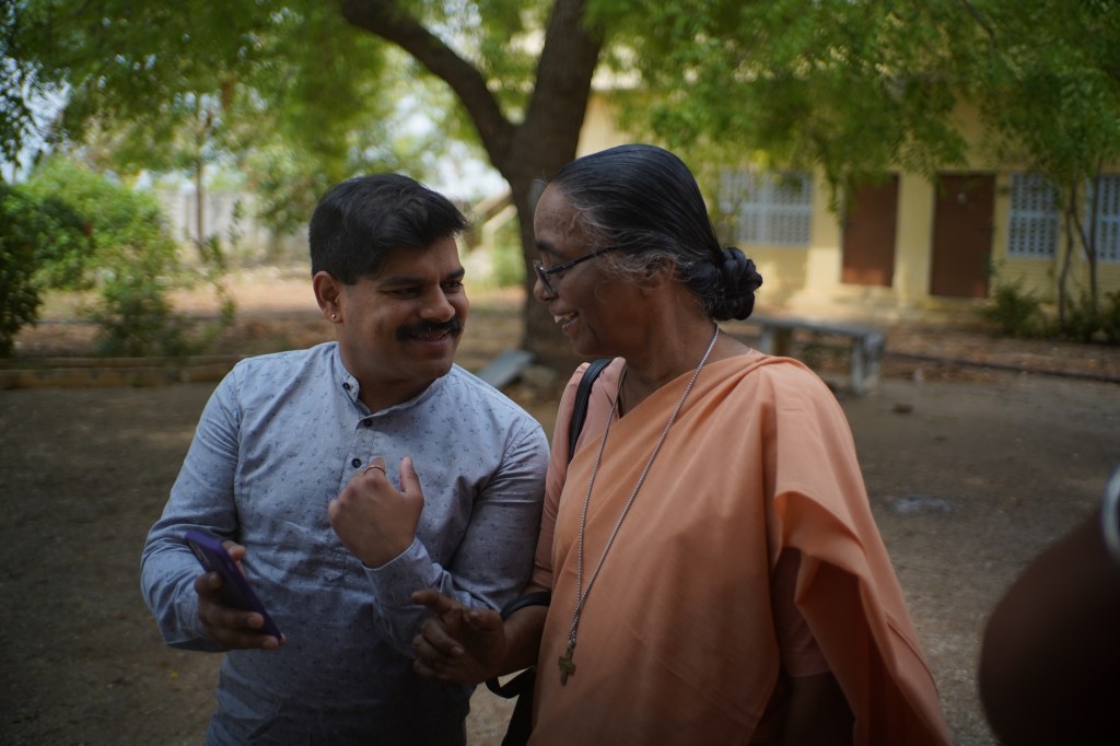 Me grinning while we wait to meet the director of the orphanage, I met her in 2019 as well.Showing images from 1991 and my 2004 trip to the orphanage director.Kumar, Anjali and Arun sitting in the orphanage director’s office.Meeting Sister Mariya Kamalan who was orphanage director in 2004 when LilaRose and I visited.Sister Mariya Kamalan responding to our questions.Anjali and Kumar walking towards an apartment complex where we consulted a community elder.Community elder and former village postal worker consulting a community census-like document for any familiar names.Waiting in a community elder’s veranda as he continues research and we makes calls.Kumar participating in his 2nd interview, this time with The Hindu News.Huskless tamarind fruit. Each little section is a seed coated in a soft sweet and sour paste that is delicious.